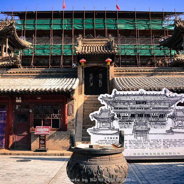 “是的,正是如此。这是第一处大明遗存的热点之一。” 我说道。穿过古城墙,来到了玉皇阁。这是此行的第二处大明遗存。也是我最喜欢的一处古迹,可谓是国之瑰宝。自然是不可不去。然而,无奈此行正值玉皇阁整修之时,并不可进入殿内参观,也就无缘看到殿内三面墙的精美壁画了。