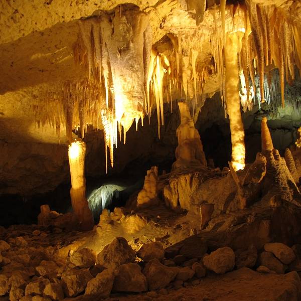 凯利山保育公园位于袋鼠岛西南部,公园内拥有可以探索迷人石灰岩的洞穴——凯利山石窟。游客跟随凯利山石窟的导游可以欣赏到钟乳石,石笋等自然景观。 洞内钟乳石千姿百态,美不胜收。