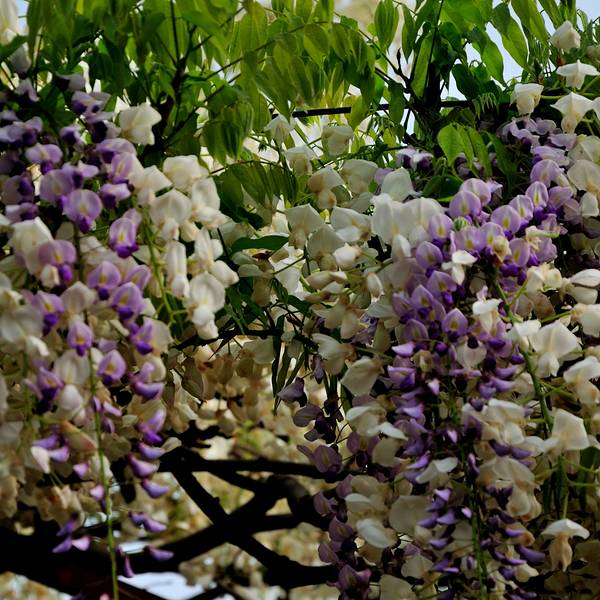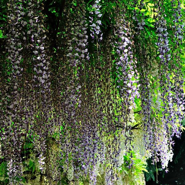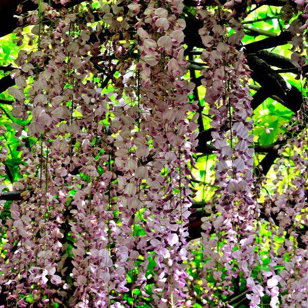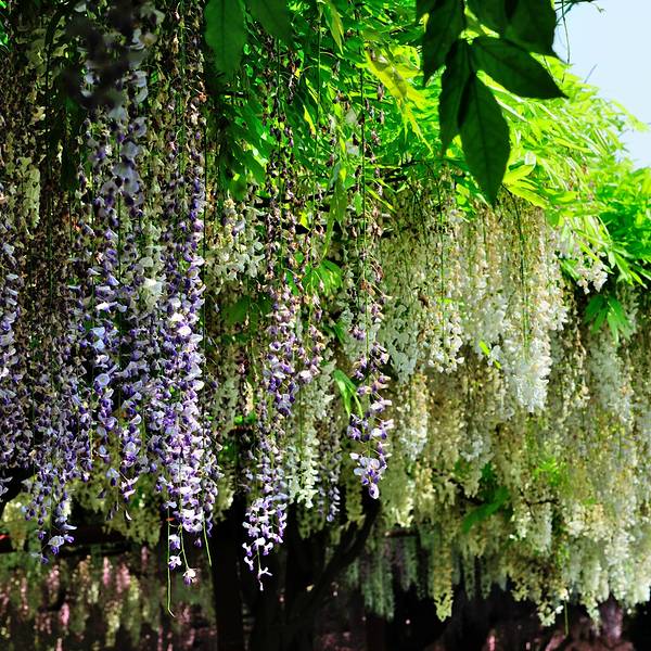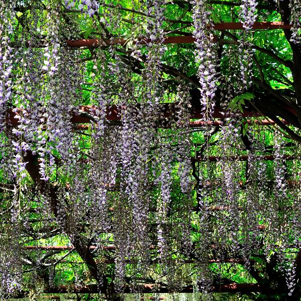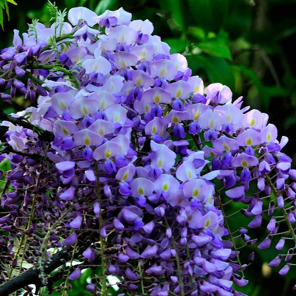 紫藤花的紫色总给人一种浪漫、唯美的感觉灵动飘逸的紫藤瀑布从藤蔓萦绕的廊架上垂下,偶有微风拂过,满目摇曳。紫藤花的紫色总给人一种浪漫、唯美的感觉。长长的藤蔓密密麻麻的,像一张紫色的帘子, 给人以无限的遐想。