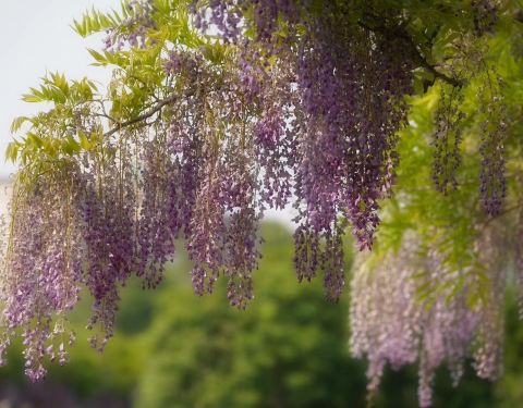 每年四月下旬,园内紫花串串、芳香诱人,让人寻味无穷。