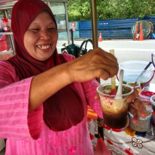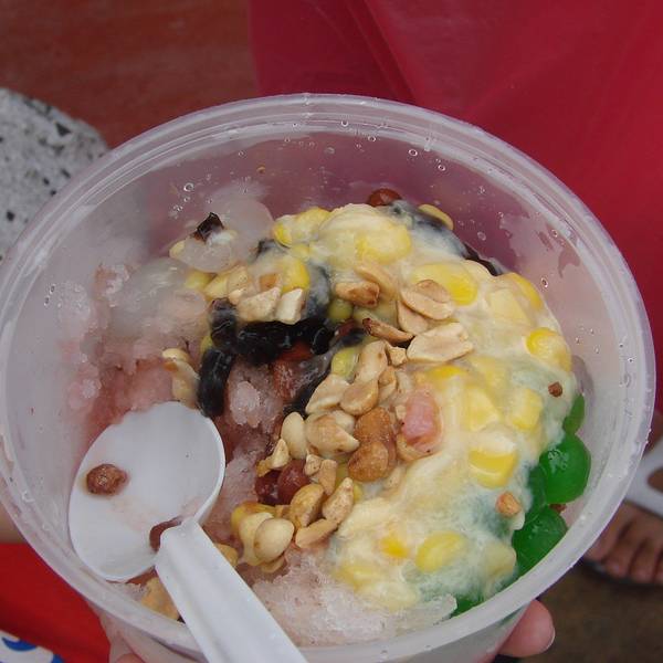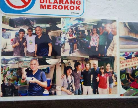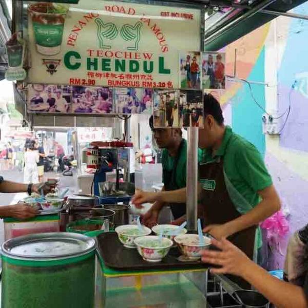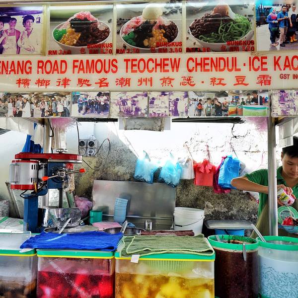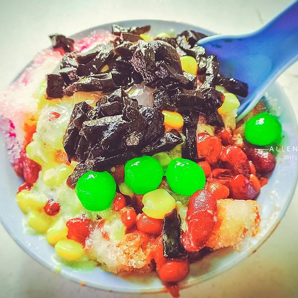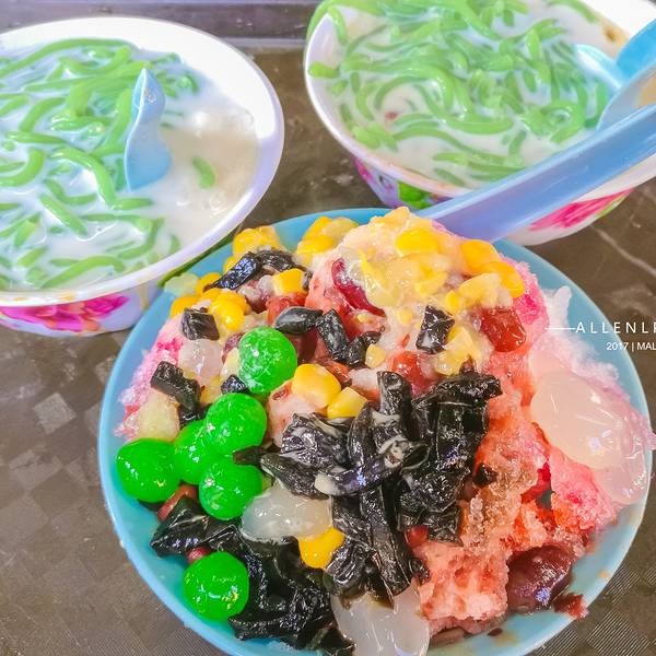 这大概是槟城排队最多的店了。 小小的推车,很多人就站在旁边捧着吃。后来才知道原来向后面走,有堂吃的地方。 这里看到新加坡老艺术家的宣传照片,记得很小的时候经常会看到他参演的电视剧。 来这边的大都是游客...这大概是槟城排队最多的店了。 小小的推车,很多人就站在旁边捧着吃。后来才知道原来向后面走,有堂吃的地方。 这里看到新加坡老艺术家的宣传照片,记得很小的时候经常会看到他参演的电视剧。 来这边的大都是游客。也有少量本地人。 煎蕊2.5马币一份。融化的特别快,要赶快吃。里面的椰浆略带一丝咸味,冰冰爽爽,价格实惠是真的。但要说是多美味的煎蕊也没有。 而且我能说我觉得煎蕊红豆霜没有普通版本的红豆冰好吃么。怪不得阿牛当年唱得是初恋红豆冰,不是初恋煎蕊冰。