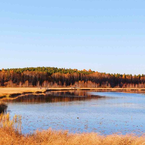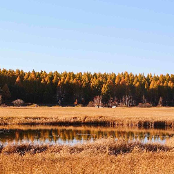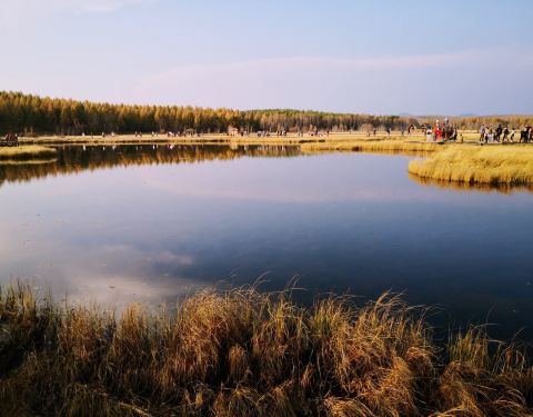 秋天的七星湖周边的草地已经变成金黄色,白桦树的叶子几乎掉光了,湖水清澈、格外的平静,已经是深秋...秋天的七星湖周边的草地已经变成金黄色,白桦树的叶子几乎掉光了,湖水清澈、格外的平静,已经是深秋的景色了,似乎这里的冬日就要开始了。这里的空气十分新鲜。