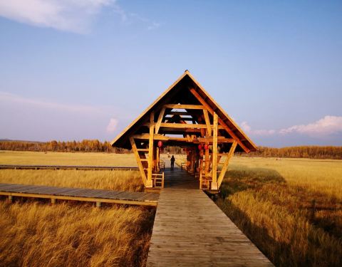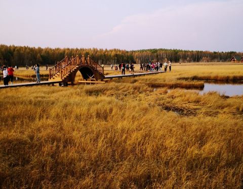 金骆驼 ...浮桥,木桥两边会有木牌提醒下面是沼泽,不要在下面行走,虽然是秋天过去,但景色依然很美,湖水清澈【周边停车】景区入口处有很宽敞的场地,这个时间去不收停车费【关于饮食&纪念品】景区门口会有卖一些牛肉干,还有一些什么地方都可以买到的少数民族饰品。【关于门票】整个围场的票是通票(130元),在外面买过...【周边停车】景区入口处有很宽敞的场地,这个时间去不收停车费【关于饮食&纪念品】景区门口会有卖一些牛肉干,还有一些什么地方都可以买到的少数民族饰品。【关于门票】整个围场的票是通票(130元),在外面买过后里面不需要在买票,景区都是可以转的【关于景区】七星湖位于河北承德的塞罕坝国家森林公园内。属于景区内比较靠里面的位置,这里距离太阳湖、月亮湖有些远。七星湖里面有7个小湖,湖面上架起了木制的浮桥,木桥两边会有木牌提醒下面是沼泽,不要在下面行走,虽然是秋天过去,但景色依然很美,湖水清澈~蓝天~白云~【温馨提示与建议】1.景区比较宽阔,遮阳的地方较少,注意防晒。2.想要买特产可以去市区的超市,景区内无论哪个地方价格都偏高,针对游客的价格。1.景区内超市、吃饭都比较贵。可以先采购一些零食。【图一】是景区的入口。走进去就是美美的风景了~【图二】是通向七个湖的第一条路,可以看到游客并不是很多,这个季节来这里可以避开人群。越往里面走景色越美,会看到小木桥,泛黄的树木,见后几张图。【关于旅行时间】我当时去的时候是在九月中旬,已经见不到什么野花了,据当地人说7-8月份更美,遍地的野花竞相开放,当然人也会更多。我们同事几个小伙伴过去的时候路上车辆非常少,景区人也不多~怎么样,赶快行动吧~ 展开
