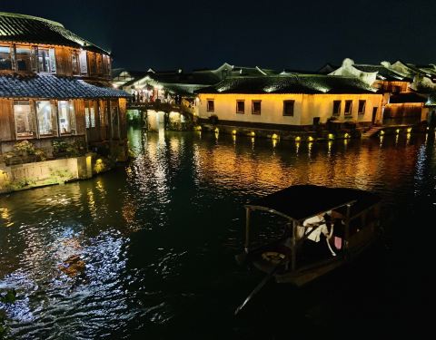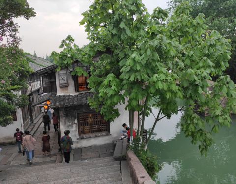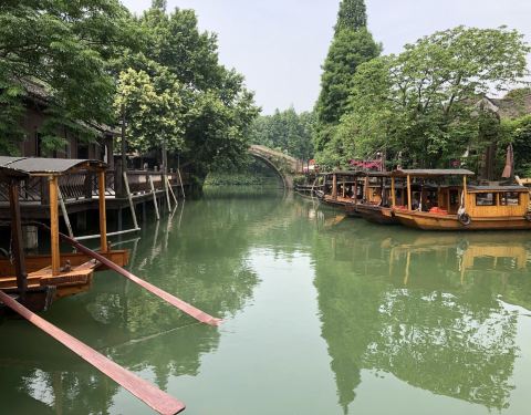 这儿是西栅大街的尽头,也是行船的终点。往通济桥上一站,一边儿是酒吧街,灯红酒绿;一边儿是乌篷船队,齐整错落;远处是白莲塔,时光交错在这里。 展开