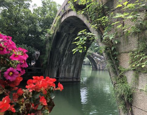 “桥里桥”位于西栅景区,其实并不是一座桥,它是通济桥和仁济桥的合称“桥里桥”位于西栅景区,其实并不是一座桥,它是通济桥和仁济桥的合称。通济桥和仁济桥,一呈南北方向,一呈东西方向,两桥成直角相邻,无论站在哪一座桥边,均可以透过桥洞看到另一座桥。