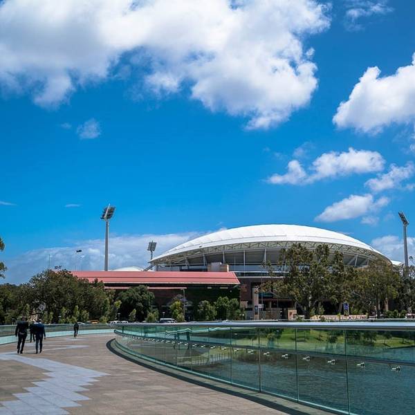出了教堂,一路向南走,便是阿德莱德风光旖旎的多伦斯河(Torrens River)了。徜徉在河畔,时常会有成群的野鸭子和小鸟在河面掠过。我们坐在长凳上欣赏着这如画的景色,感受着美好的景致带给我们的心旷神怡,悠然自得。河边是阿德莱德的体育馆,应该是我们前一天在Mount Lofty上看到的,阿德莱德市区最亮的那个建筑。走进去一看,竟然是开放的,并不像我们的体育馆,没有赛事或者演出的时候,要么关门,要么收费参观。体育场真是太大了,我用了16mm的广角镜头依然无法拍全整个体育场。嗯,我尽力了。。。