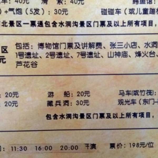不错哟,很是值得一去,里边趣味性极佳,小孩子很喜欢,还体验了坐骡子车,骆驼车,坐船等,藏兵洞很...不错哟,很是值得一去,里边趣味性极佳,小孩子很喜欢,还体验了坐骡子车,骆驼车,坐船等,藏兵洞很凉快也很有意思,值得一去。