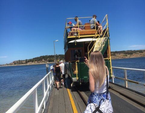 好了,你们想什么呢?我可不是老司机,不开那种车的,其实,他们是跳完舞就出来继续吃早餐哈!我们一边吃着早餐,一边留意着周围的趣事和风物,终于觉得阴雨沉沉的心情去掉了不少。饱餐一顿后,又到出发时,我们为了能够领略到更多美景,操作导航时选择了走B级公路,打算横穿库容国家公园而过,最后才到甘比尔山。车子开出小镇不远,最有意思的事情来了,那就是乘坐墨累河特有的绞索驱动轮渡渡河,还带免费,真是非常特别的体验。 展开
