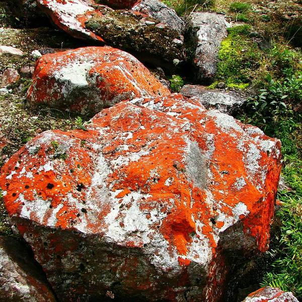 红石。因为石头周围附着一种藻类(乔利橘色藻,富含红萝卜素)而得名。 展开