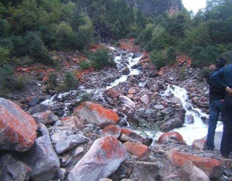 体验:这些是一条长约20km的河滩花岗岩石带,看起来很有红河谷的意境,这些“红色”本身是生物体,再说细一点是有生命体的藻类,只有在空气特别好的特定高原地区才会出现。这些生命体随时都在生长,因为造访和时间温度、光照不同,红色也深浅不一,的确很有看点。