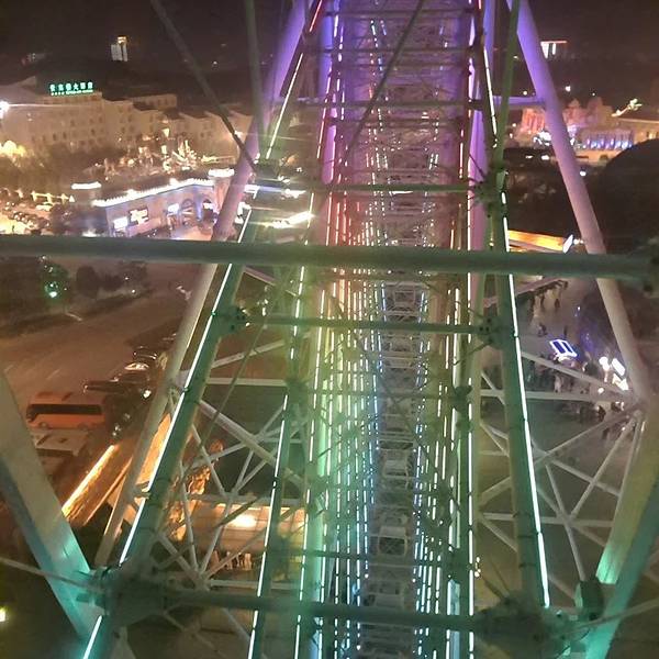 项目介绍:摩天轮重点介绍,排队时间一般在40分钟左右,可以在高空欣赏风景,夜景很漂亮.梦幻谷还有剧场表演--梦幻太极和暴雨山洪,梦幻太极的舞台效果不错,特效做的很好,但是缺少点剧情,暴雨山洪前1-8排可以体验湿身感,不容错过