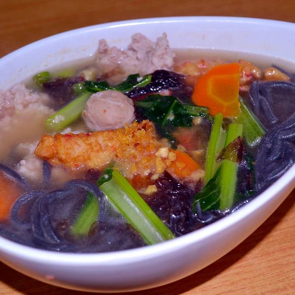 - 浓白的鱼头汤煮着鱼丸芋头等菜,超级暖胃,