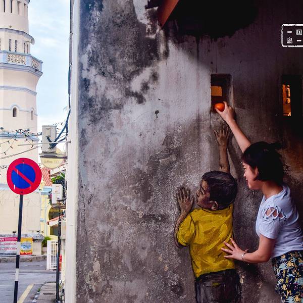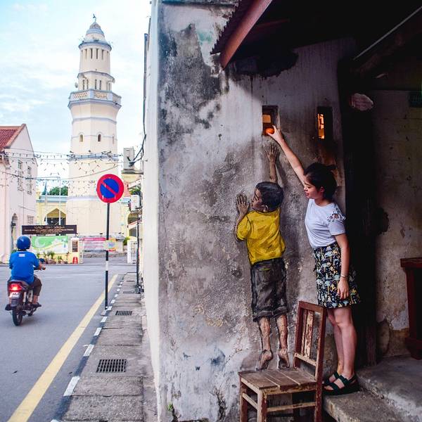 在 槟城 的古旧建筑间绕着,
