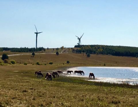夏天又来到塞罕坝,遇上月亮湖休整,还是能走过去看看,水不多,但水草风貌,人们还可以在这里骑马玩夏天又来到塞罕坝,遇上月亮湖休整,还是能走过去看看,水不多,但水草风貌,人们还可以在这里骑马玩。绿草如茵,山峦起伏。远处风车随风转动。
