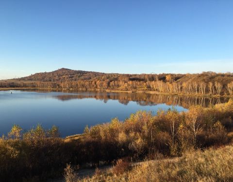 我们十一去的非常的美,蓝天白云湖光山色,满山都是金黄色的树木和灌木,大自然太美了