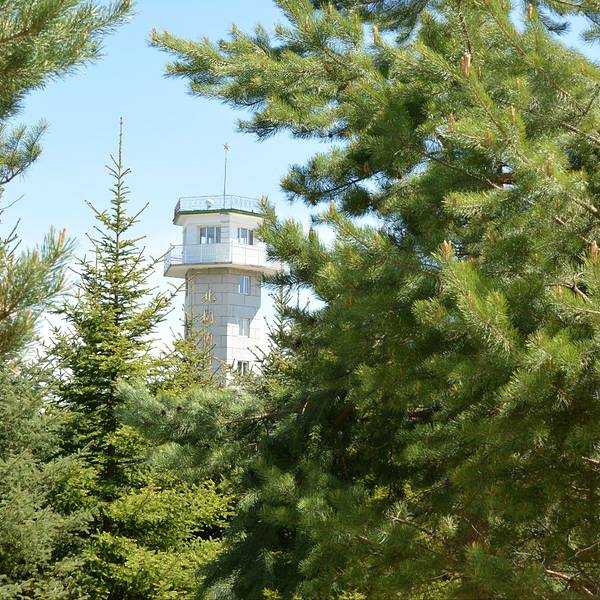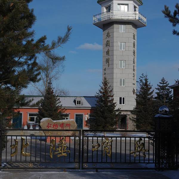 北极村哨所被称为“北陲第一哨”,初期哨所是木制的,俗称“大架子”,约有三、四层楼梯,上面是个小阁楼。后因木质粗劣,整个架子摇摇欲坠,抗不住狂风和洪水侵袭,于是又建了铁架,较原来的木架稍高些。1982年重建为塔楼,整个塔为六面柱体,共有七层,楼梯直通塔顶。塔顶面积为10平方米,可用高倍望远镜观赏俄罗斯风光。瞭望塔为砖混结构,一楼及塔顶比较宽敞,其它各层均由铁制楼梯占据。塔身镶嵌“北陲哨所”,“祖国利益高于一切”铜制大字。瞭望塔两侧有两座二层小楼,分别是会晤站和士兵营房,周围用砖墙圈围,院子里整洁有序、养花种草,还有一些健身设施。