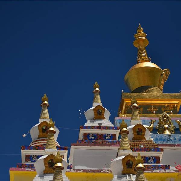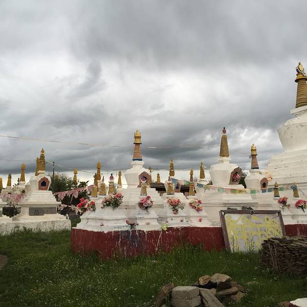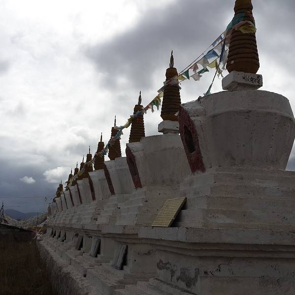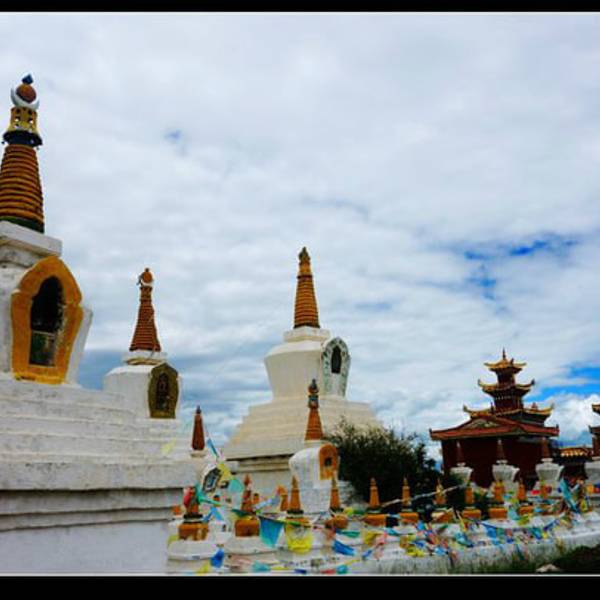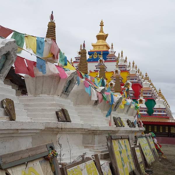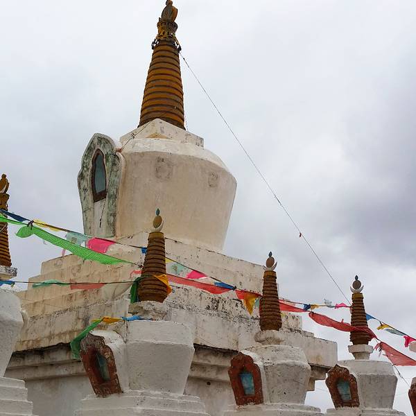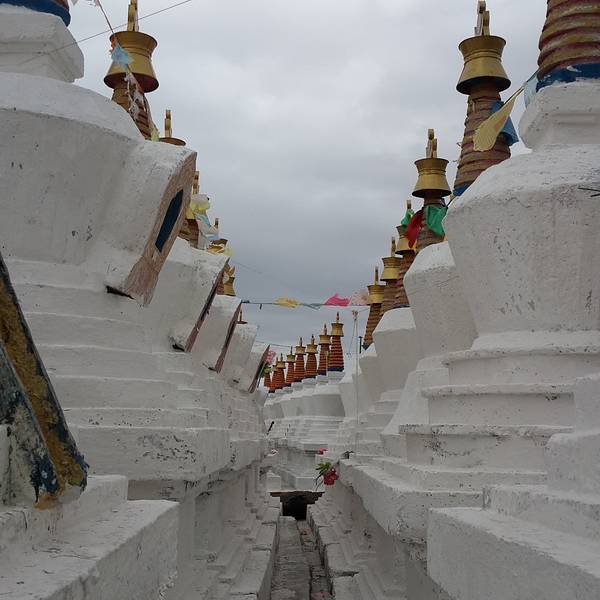 比如白塔分几种,上面的属于放宝石、宝贝的,左边的是牙塔,放的是不幸在朝圣路上去世的人的牙齿。所以牙塔不要随意拍照,我就远远的拍了一张! 展开