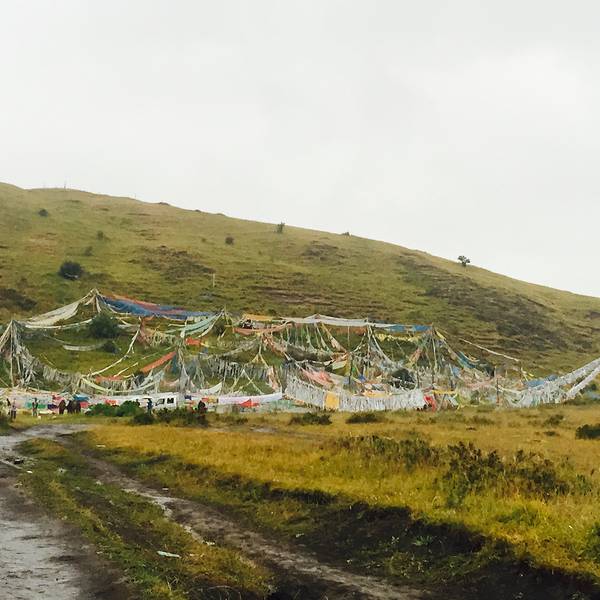 可能是为了应景,当天早上下起了本次旅行的第一场雨。借了客栈老板的大雨衣我们就出发了。有天葬仪式的日子那条没有标识的山路上多少会碰到几个能指路的人。挺远的,走路大概要半小时。等我们到达时天葬仪式早就开始了。原本兴冲冲想见识的我们集体蔫了。那场面有点不忍直视。我全场站在几十米开外眯着眼睛看。果然这张场景还是要经过艺术加工的比较能被接受,尤其是后期需要上工具以后😰。