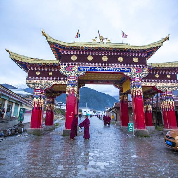 我们是直接包车前往的,从若尔盖县城过来两个小时左右的车程。进入郎木寺镇以后道路两边一边属于四川,一边属于甘肃,街道很繁华,青年旅社比较多,作为一个外国人偏爱的景...在整个若尔盖之旅中最期待的一个景点~