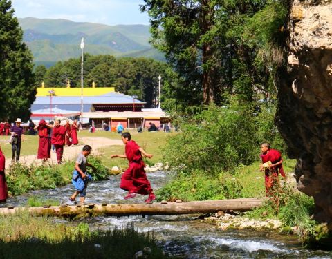 阿坝州若尔盖县,与甘肃郎木寺隔河相望 ,可驾车或包车到达。