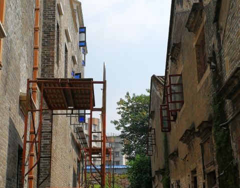 东华里在岭南天地的最旁边。岭南天地中一路有身穿制服的保安,一路问过去,一路的指点,其中有几个都不无遗憾地告诉我:拦起来了,外面看不到。果然,只能看见广告上面零星地探出几个镬耳屋墙头,交代着自己的岭...