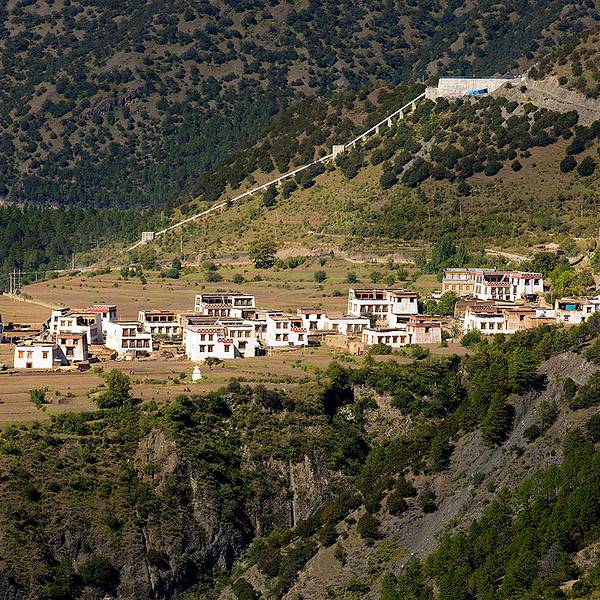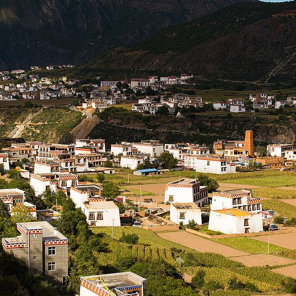 这边的藏寨,都是白色的,白藏寨在阳光下很漂亮。