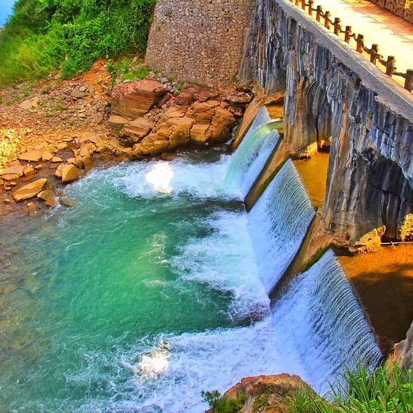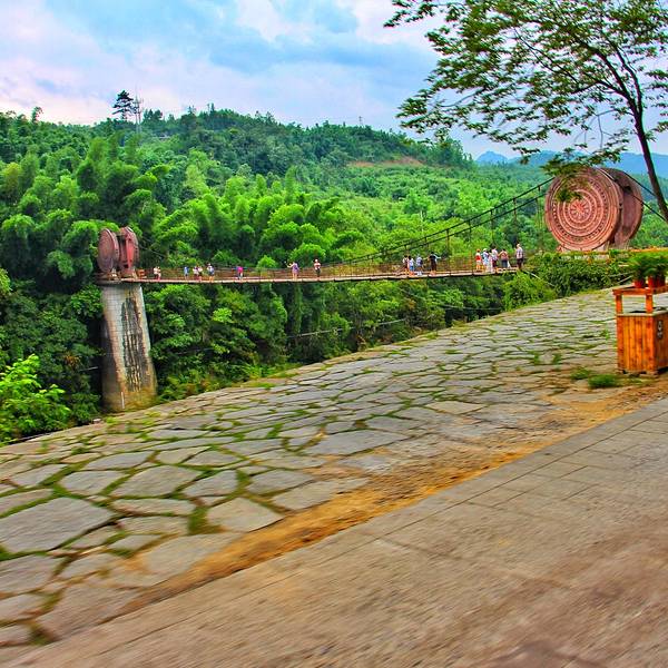铜鼓桥是一个人造的景点,离小七孔古桥很近。铜鼓是瑶族的象征铜鼓桥是一个人造的景点,离小七孔古桥很近。这座桥建造一条峡谷之上,因此相对来说还比较高,从此桥经过就可以乘车返回东门。铜鼓是瑶族的象征。