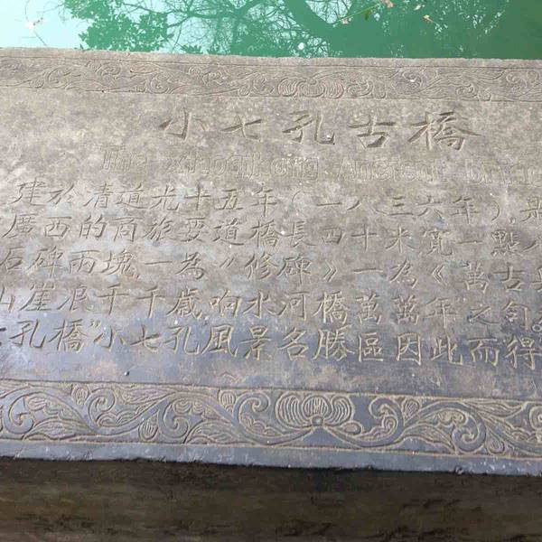 ...,从东门坐摆渡车第一站就是,离古桥不远,景色就一般般了,感觉不像很久的桥,所以也就拍照留念一下小七孔景区内的一个景点,从东门坐摆渡车第一站就是,离古桥不远,景色就一般般了,感觉不像很久的桥,所以也就拍照留念一下。去小七孔游玩,从荔波县城坐客运小巴,10块钱,很是方便。景区很大,慢慢走,能玩一...小七孔景区内的一个景点,从东门坐摆渡车第一站就是,离古桥不远,景色就一般般了,感觉不像很久的桥,所以也就拍照留念一下。去小七孔游玩,从荔波县城坐客运小巴,10块钱,很是方便。景区很大,慢慢走,能玩一天,园区配套设施一般,建议自带干粮。 展开
