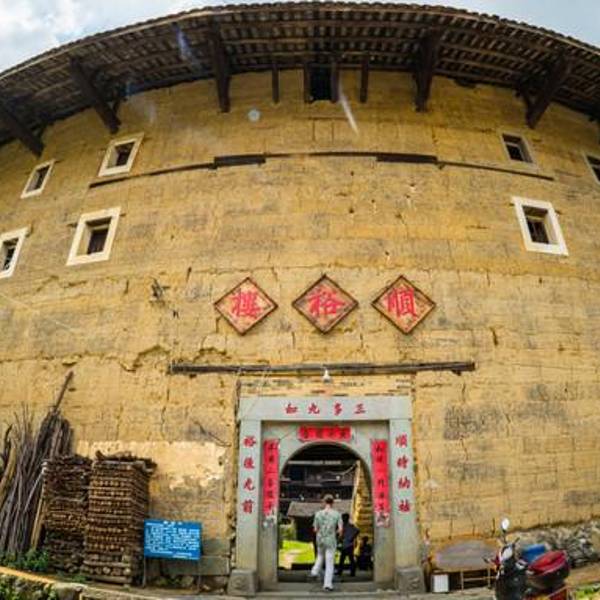 楼边的古民居临水鳞落,独占风光。 顺裕楼,位于书洋镇的石桥村顺裕楼,是闽南所有的土楼中规模最大的圆形土楼,里面房间有368间,全楼居民张姓。 顺裕楼,位于书洋镇的石桥村;石桥村,则在河坑土楼群往梅林方向三公里处。过了公路大桥就到了,站在路边,只见村中一座座的方...顺裕楼,是闽南所有的土楼中规模最大的圆形土楼,里面房间有368间,全楼居民张姓。 顺裕楼,位于书洋镇的石桥村;石桥村,则在河坑土楼群往梅林方向三公里处。过了公路大桥就到了,站在路边,只见村中一座座的方形、圆形土楼民居影影绰绰,忽隐忽现,蔚为奇美。而远远就能望见的“顺裕楼”这个黄黄的大烟缸,它坐落在青翠的山脚下,一条溪流从楼前蜿蜒流过;楼边的古民居临水鳞落,独占风光。 展开 2015-07-11 13:24