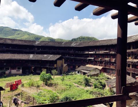最大的土楼 ——顺裕楼。进门之前就知道它是最大的土楼,但是没想到那么大最大的土楼 ——顺裕楼。位于福建省南靖县书洋镇石桥村,建于1937年,外廊直径86米,每层72间,4层计288间,楼中又有80间,共368间。背山面水,气势恢宏,有“王中之王”的盛誉。