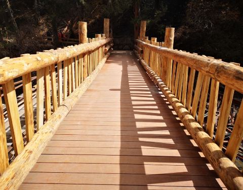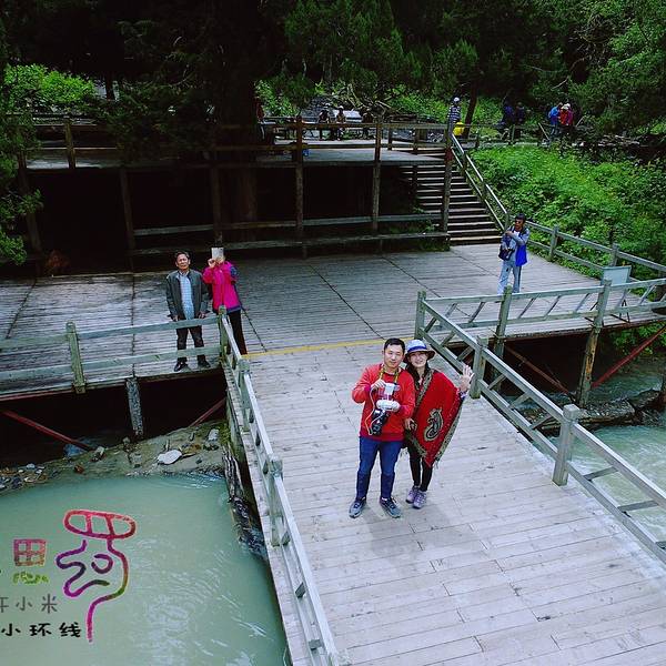 长坪沟的第一个景点,沿着木栈道顺着路标,走一个小时左右就到了。