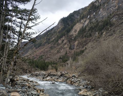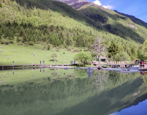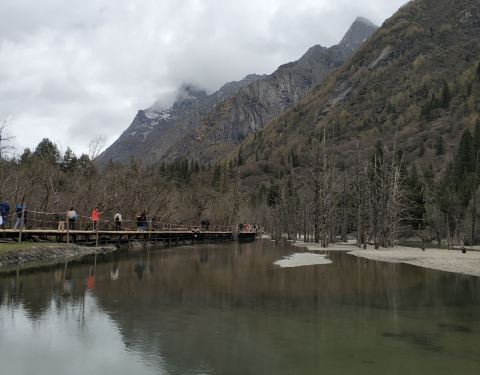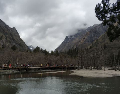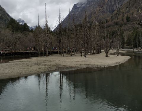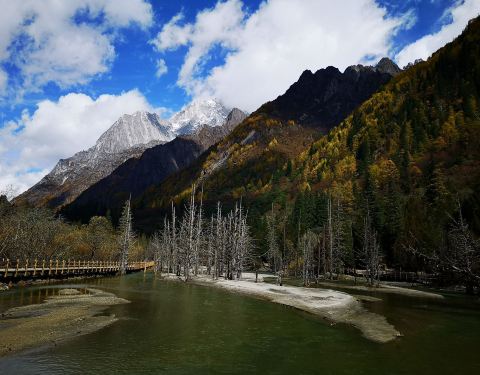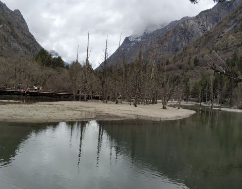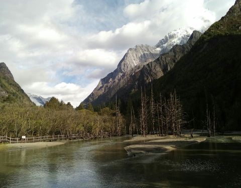 同时,这里也是可以半程骑马的地方,因为马道和木栈道在这里交汇,有些人只骑到这里,而有些人从这里开始骑徒步尽4公里,到达枯树滩。这里是一片比较宽阔的河滩,河面上枯树林立,远处也能看到四姑娘山。游客们经常在这里休整,然后向木骡子冲击。同时,这里也是可以半程骑马的地方,因为马道和木栈道在这里交汇,有些人...徒步尽4公里,到达枯树滩。这里是一片比较宽阔的河滩,河面上枯树林立,远处也能看到四姑娘山。游客们经常在这里休整,然后向木骡子冲击。同时,这里也是可以半程骑马的地方,因为马道和木栈道在这里交汇,有些人只骑到这里,而有些人从这里开始骑。我们也在这里休息一下,然后第一次颤巍巍的户外放飞了无人机。当地的老乡们说,前些日子有一哥们,放飞无人机后,无人机无法返航,眼睁睁的看着无人机落到远远远远的树丛中,然后他开价2000,让当地老乡帮忙找。。。。。。 展开