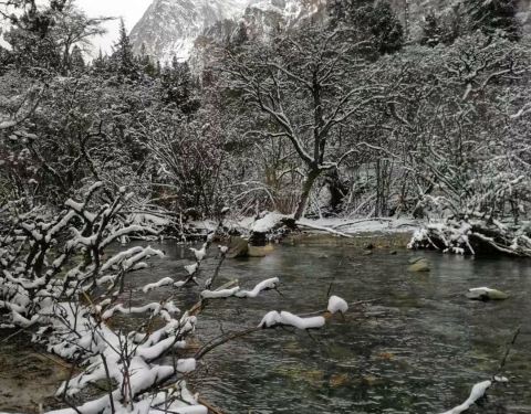 四姑娘山的枯树滩,在冰雪覆盖下非常棒,景色宜人。