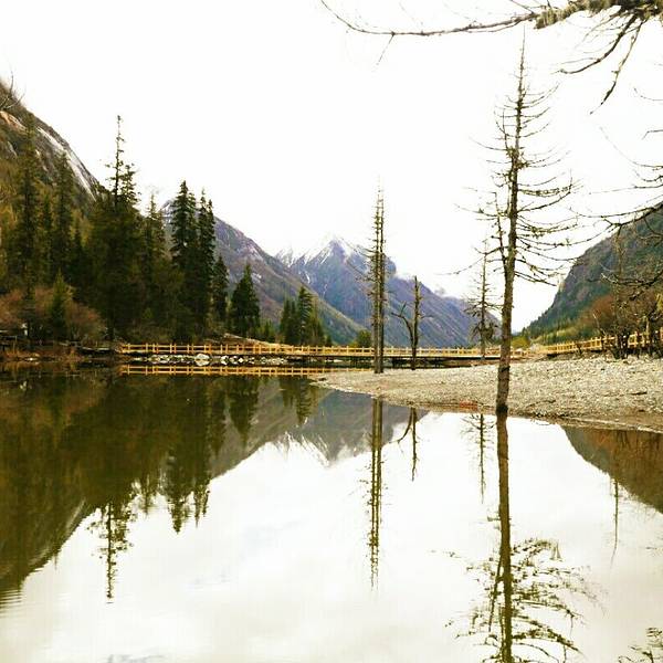 这里犹如明镜,湖里把一切美景收揽其中。这里是双桥沟八景之一“盆景滩”沟内长着形状奇特的沙棘树林这里犹如明镜,湖里把一切美景收揽其中。这里是双桥沟八景之一“盆景滩”沟内长着形状奇特的沙棘树林。由于山洪冲积的泥沙淤泥阻塞,导致河流改道,淹死了原本在陆地上生长的沙棘树。溪水里富含丰富的钙化物,沙...这里犹如明镜,湖里把一切美景收揽其中。这里是双桥沟八景之一“盆景滩”沟内长着形状奇特的沙棘树林。由于山洪冲积的泥沙淤泥阻塞,导致河流改道,淹死了原本在陆地上生长的沙棘树。溪水里富含丰富的钙化物,沙棘树在临死前拼命吸取营养,从而使得沙棘树死而不倒。高大的盘曲,异伸,有一种老松的苍劲。 展开