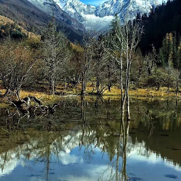 有一处清净的湖水,四周雪山倒映在平静的水面上,还有几个枯木竖立在水中,景色清晰辽阔拍照起来非常有意境四姑那措是四姑娘山景区观光车停靠的其中一站,有一处清净的湖水,四周雪山倒映在平静的水面上,还有几个枯木竖立在水中,景色清晰辽阔拍照起来非常有意境。