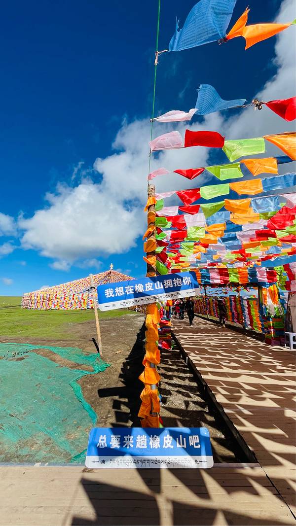 橡皮山海拔较高,有3800多米,由于海拔高,山上空气稀薄,干燥少云,但是空气洁净,阳光灿烂,日照充足,若没有高原反应的困扰,可以去多拍些照片,视野非常开阔,拍照很好看,很容易出大片效果。