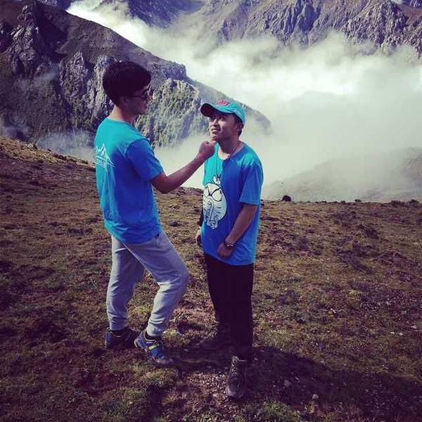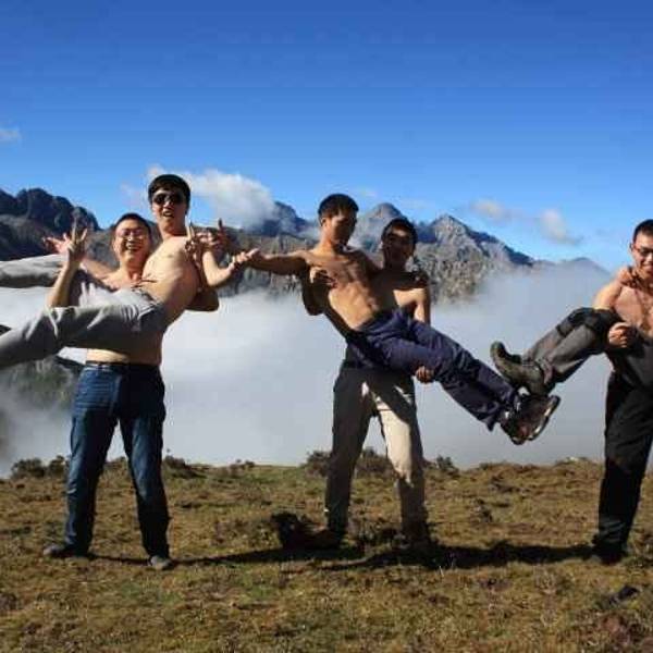 然而回来后发现。。。这一组照片并上不了封面,太一般了。。。哈哈哈哈哈哈。没上顶的小伙子已经在营地嗨了起来。