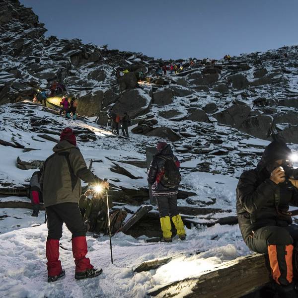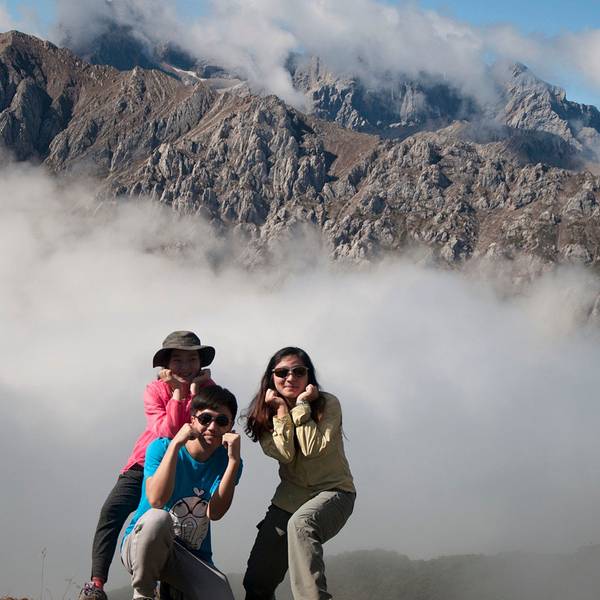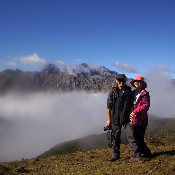 冻死宝宝了,一直在原地跳来跳去的保暖,等待着冲顶队伍下撤下来每人给他们拍一张到此一游照,就这样。大峰的整体强度比二峰简单很多很多,6点左右到达垭口下面的一个碎石坡了,这里上去就可以到达垭口大平台了。地平线已经升起,天也蒙蒙浓浓,5K米级的山还是爬过好多座了,从来没遇到过云海,你妹啊~~~~终于。。。...大峰的整体强度比二峰简单很多很多,6点左右到达垭口下面的一个碎石坡了,这里上去就可以到达垭口大平台了。地平线已经升起,天也蒙蒙浓浓,5K米级的山还是爬过好多座了,从来没遇到过云海,你妹啊~~~~终于。。。。终于。。。。有了高山云海了。。。