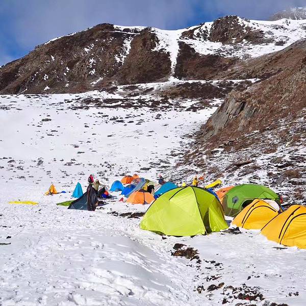 突然想小小的鄙视下广东三人组~~~全军覆没,到达营地之后全体战败了。。。 都没去冲顶。已经有一部分人把营地的帐篷收拾好了,隔壁营地另外一只队伍的帐篷太豪华了。。。感觉可以住7 8个人的。。。好嗨皮。早上喊磊子起来冲顶,他说要照顾狗,后面经过骚痘痘的分析是这样的。。。