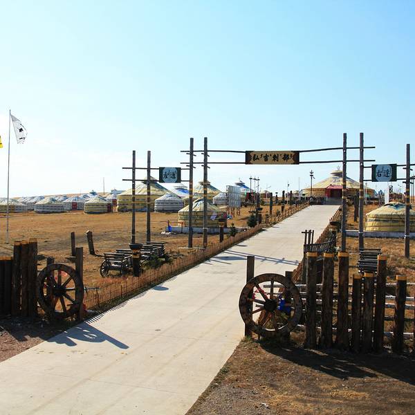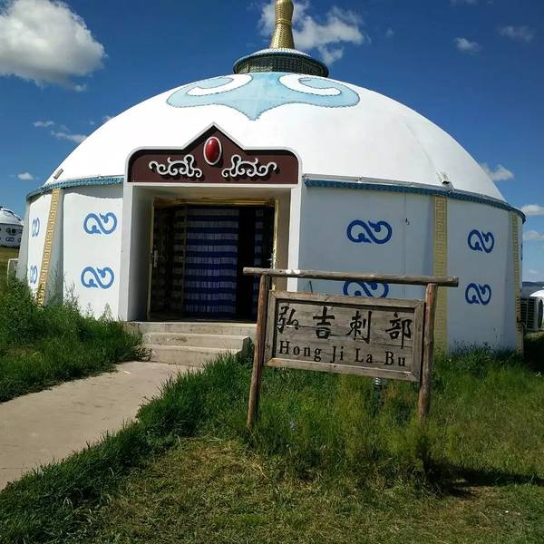 弘吉剌部蒙古包大营位于额尔古纳市黑山头镇桦树林地区,整体占地面积约66000平方米,总投资近800万元,以蒙古包群建筑为特色,以展现蒙元文化史为主,娱乐项目有骑马、射箭、篝火晚会等,号称呼伦贝尔第一大蒙古包群落。是“蒙兀室韦,天骄故里”——额尔古纳的一个最新亮点,它距对俄贸易“黑山头”口岸27公里,距额尔古纳市35公里,交通十分便捷。整个营区视野开阔,气势恢宏,在这里你能亲身感受到蓝天白云下广袤的草原,根河水环绕着美丽的湿地静静流淌,103个蒙古包与美丽大草原的完美结合,将蒙古人豁达洒脱的性格自然相溶,碧玉苍穹下那肥壮的畜群组成的完美画卷让您流连忘返。