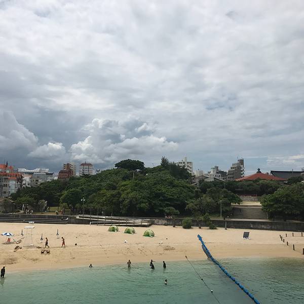 骑着小车慢慢逛。顺便游览波上宫。海滩很小