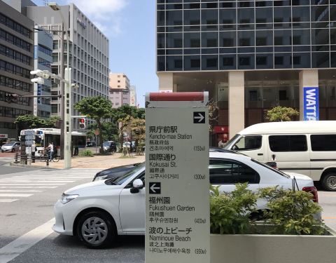 搭乘巴士2路国场线、3路松川线、5路识名线、14路泊线,在“久米邮局前”下车,再步行约5分钟即到。
