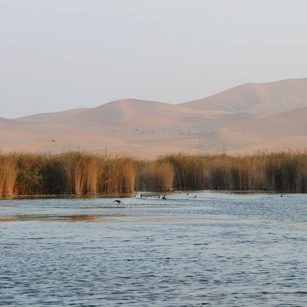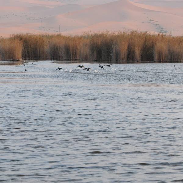 到达阿拉善沙漠世界地质公园,准备乘船过湖前往沙漠核心景区,被告知已到要关门时间,渡船停开了,而...