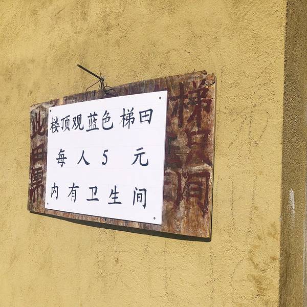 三、收费。你一定很奇怪,已经买过门票,怎么还收费?这是当地村民在自家拦路收取的过路费。5元,不多。要不只能在附近的空闲处跳下去,方能走近这块与众不同的梯田。只是要多加小心,有些地方1.5米的落差。