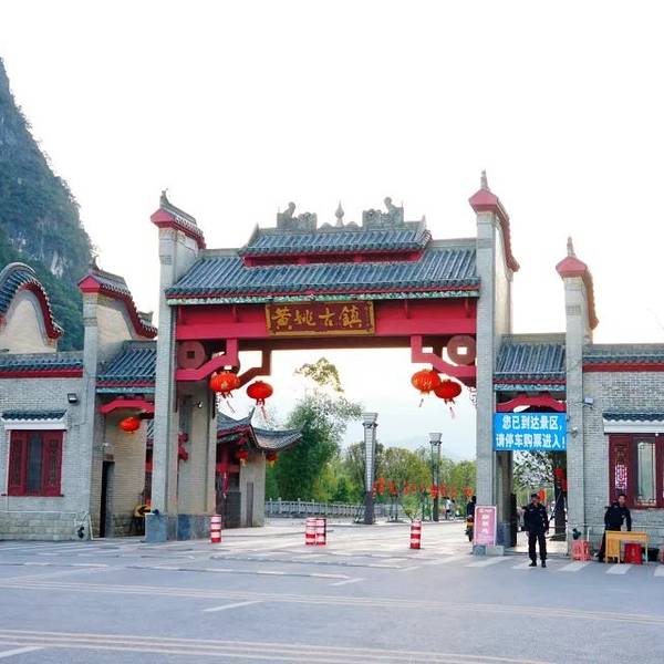 黄姚古镇较出名的景观之一就是黄姚石板街,黄姚石板街目前有8条,分别为:金德街、迎秀街、天然街、中兴街、安乐街、连理街、龙畔街、山磅街。迎秀街的石板街最阔,约5米;最窄处为金德街羊巷口,不到两米,两旁各摆肉台一张,行人相对而行,只能擦肩而过,每逢墟期节日,交通为之阻塞。1964年复置黄姚镇后,拓建了宽阔的新街道,但昔日的石板街仍然完整无缺地保留了下来。