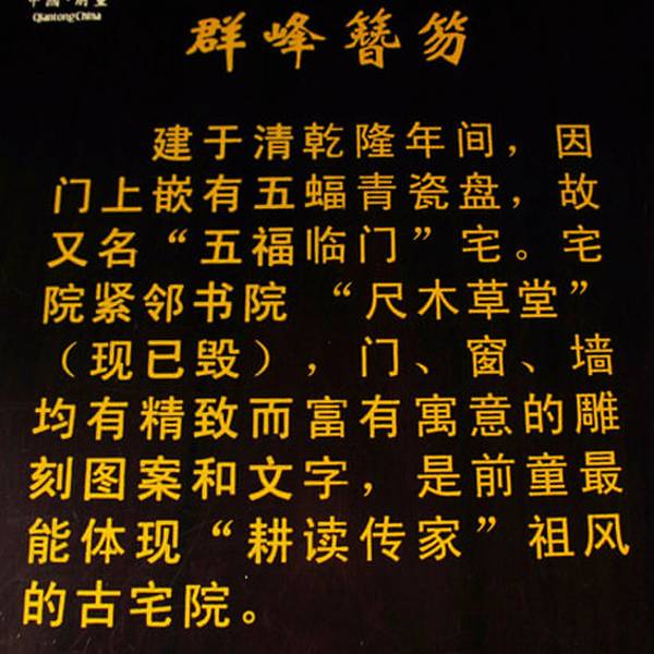 群峰簪笏宅由清乾隆(公元1736-1795年)举人童桂林所建,当时他效法“孟母三迁”择址于书院...