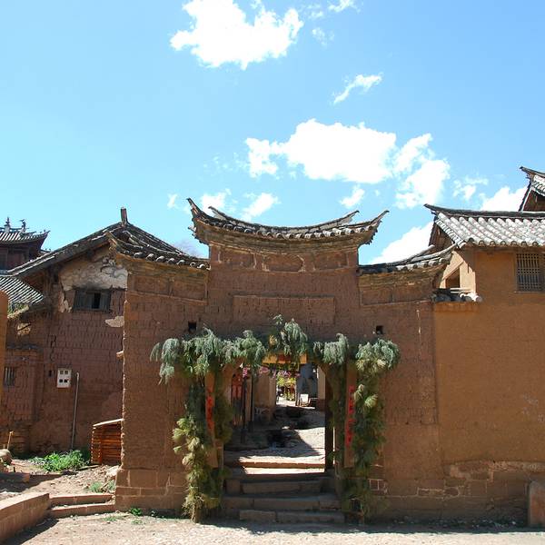 东寨门被村民称为“街子门”,这寨门用土坯镶砌而成,仅容两匹马同时通过,保留了茶马古道上的寨门原有的样子。