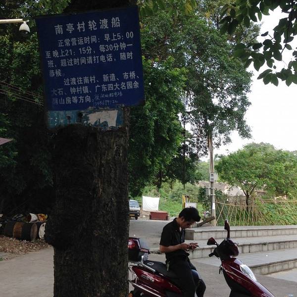轮渡:从番禺南村旧市头村码头座船到南亭村渡口费用是1块一个人,自行车1一块