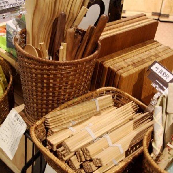 地上二楼上来的小店,售卖有机食物与桧木餐具。台湾桧木现在已经全面禁止砍伐,所以用桧木做的物件价格很贵