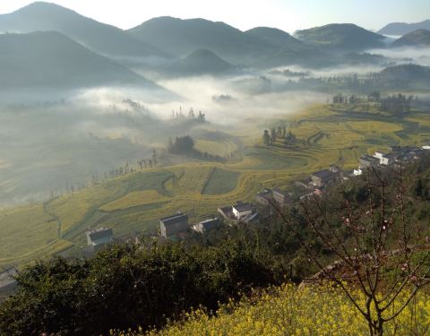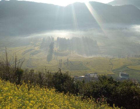 附近山上的菜花田造型挺美的附近山上的菜花田造型挺美的。最爽快的是后来坐车前往相邻的广西西林县时,我坐在车头位看着汽车在花海中飞快颠簸穿行,菜花的清香混合在潮湿、鲜润的凉风中从窗缝灌入车内,感觉自己就像鸟儿在花间飞翔一样。广...附近山上的菜花田造型挺美的。最爽快的是后来坐车前往相邻的广西西林县时,我坐在车头位看着汽车在花海中飞快颠簸穿行,菜花的清香混合在潮湿、鲜润的凉风中从窗缝灌入车内,感觉自己就像鸟儿在花间飞翔一样。广西西林县再转车到云南的法利村。 展开
